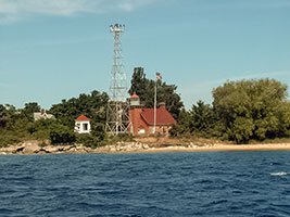 - History: The current small iron tower was built in 1913 to replace an 1847 stone lighthouse that was demolished. It marks a hazardous shoal in the middle of the river.