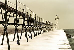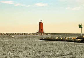 - History: A bright red 1903 steel tower at the very end of the north pier, marking the entrance to the Sturgeon Bay Ship Canal from Lake Michigan.