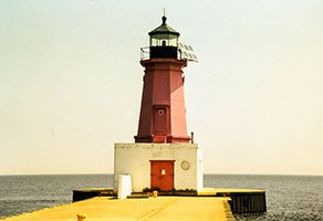 - History: A bright red 1903 steel tower at the very end of the north pier, marking the entrance to the Sturgeon Bay Ship Canal from Lake Michigan.